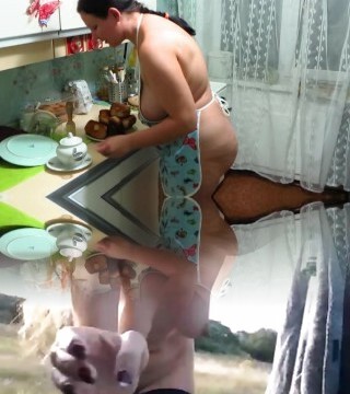 My stepmother fellates my rod in the kitchen of the cabin pt2 I fuck her rich pussy