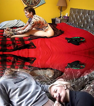 I find stepmother so sexy in a sweatpants that her huge pussy makes me horny. rubbing, quickie, but I end up with a hand job