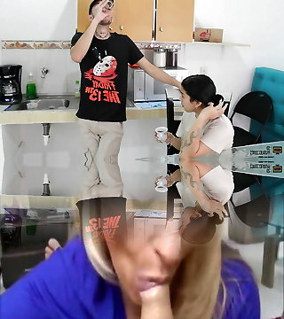 Stepsister wanted to deepthroat her stepbrother and was caught by her stepmom