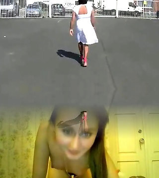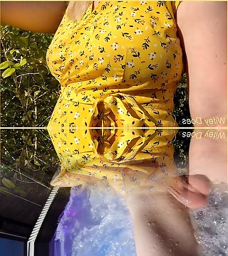 Wifey heads out in a cute summer dress braless and looks awesome with her towheaded hair.