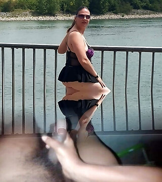 Sexy mature Danielle showcasing outdoors