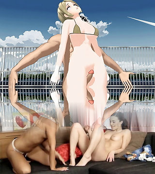 on the balcony flashing and toying