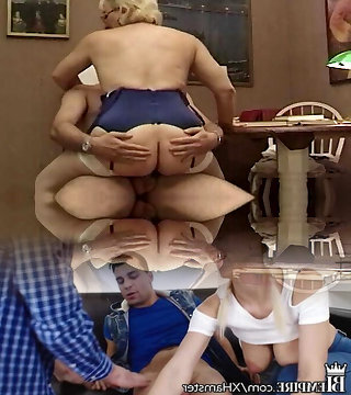 Old Men porking young brunette Bunny and his wife saw it