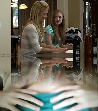 couple of stepsisters are alone in the living room and they get horny and start having sapphic orgy