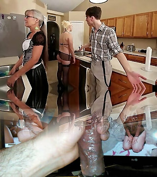 Two big busty mature moms sharing slim successful stepson