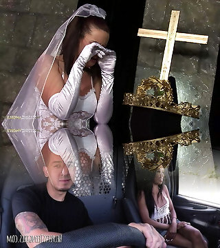 Sexy brunette milf is a bride and she plows in front of the church altar
