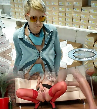 All set for work and hoping to display the boss my mature clean-shaved labia in crotchless pantyhose. I'm 52 and he's 30.