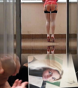Girl Mona. In my red transparent skirt stockings, garter belt and high heels outside.