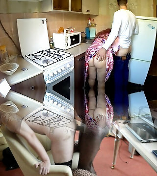 Son ravaged in the big ass stepmom in the kitchen. Mother and stepson anal invasion