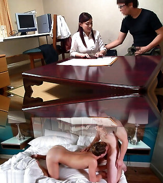Yam-sized milk cans brunette gets seduced by a hottie during an interview