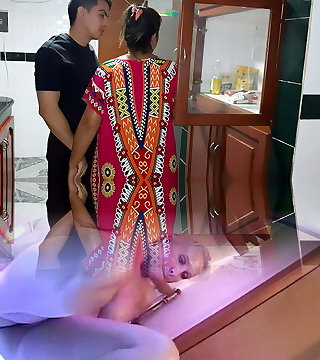 Step-Son Having Fuck-fest With Lesbian Step-Mother And Girlfriend In The Toilet 4K