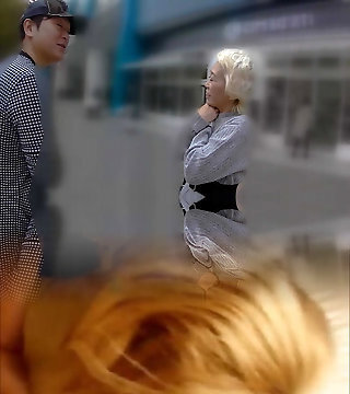 Spouse Helps Asian Wife With Grandpa Lover Outdoors