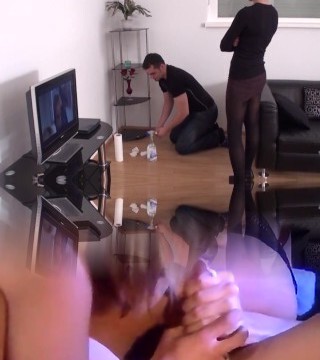 Wife catches husband with his young domme - elderly &_ young threesome