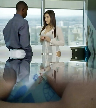 Mature dark-haired Vanessa Videl gets a massage and fucking by a ebony dude