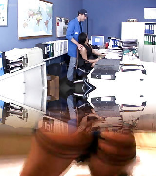 A beautiful mature dark haired loves to boink with a big dicked client on her desk at the office