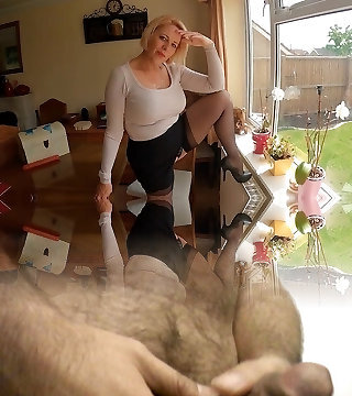 Sweet ash-blonde April Johnson in white pantyhose housewife.!!!