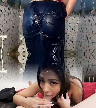 She squirts everywhere while stroking with her new fuck stick and her little vibrator with the help of her boyfriend