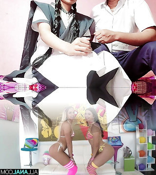 Japanese FFM pickup cougar vs school student full body leotards