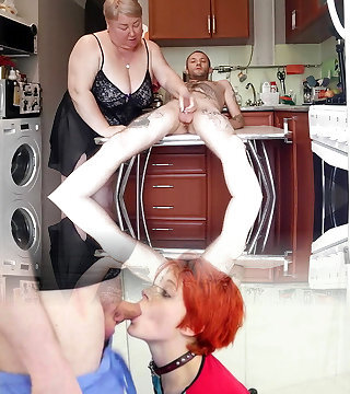 I'm sitting on the kitchen table and my mother-in-law jerks my fuck-stick
