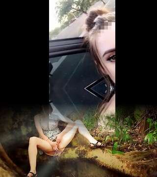 Risky lesbian strap on bang-out in car. We might have been seen! Some hilarious moments
