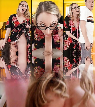 Towheaded Mommy With Glasses Is Sucking Dick And Eating Spunk Along With Getting Her Ass Fucked