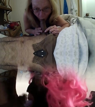 Mature redhead scum in glasses sucks a weiner in Pov scene