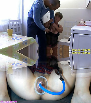 Blonde housewife gets plumbed with a cord on by a lesbi midget