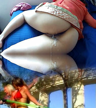 Brunette mom Katina got her bald cunt humped at the pool