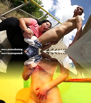 Old mother riding his cheating dick outdoor