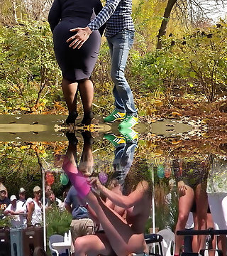 Mature swingers shagging outdoors