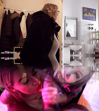 Risky licking of fuckholes in the entrance