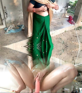 Desi Indian MILF with a big ass jerks her own mounds in a farmhouse