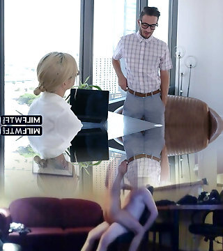 This mature chief is lucky to have a horny brunette milf secretary who loves stiff core anal sex